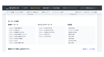 サイトの構成、共起語、検索意図を瞬時に可視化し、成功のヒントを得ます。