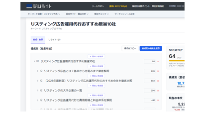 SEO評価を高めるための最適な記事構成案をAIが瞬時に生成。